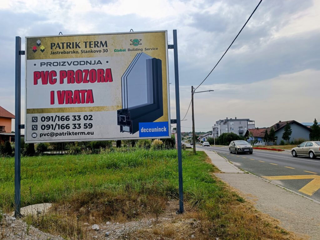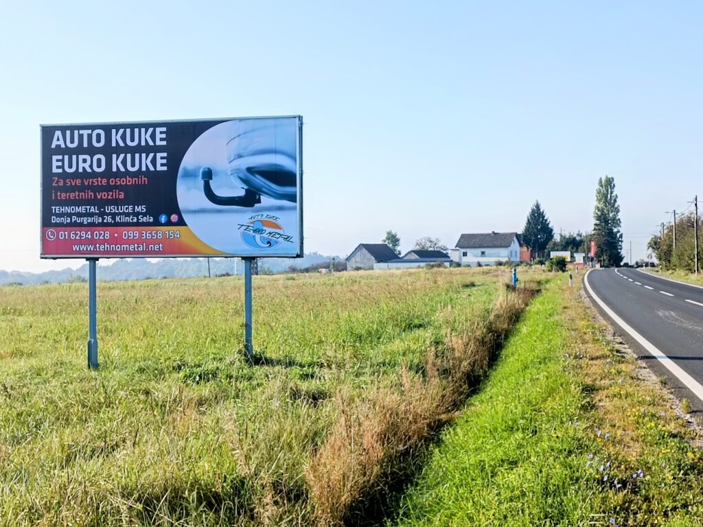 Obostrani reklamni billboard u mjestu Klinča Sela pokraj autobusne stanice. Dimenzija reklamnog pano je 400cm širine i 300cm visine. Vizual izrađen u tehnici digitalnog tiska na PVC materijalu montiran i napet pomoću aluminijskih FM profila i zatezača.