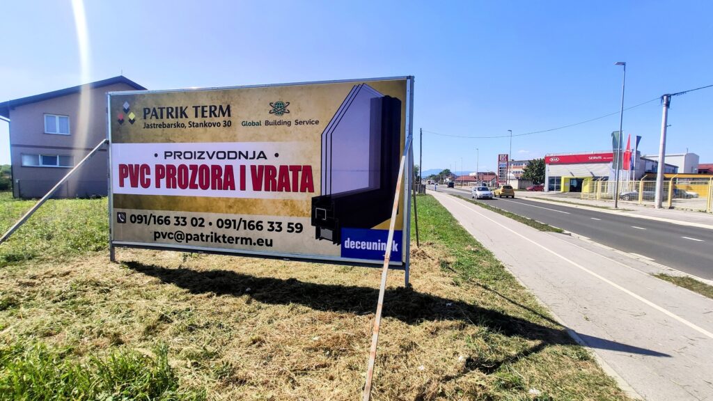 Obostrani reklamni billboard u mjestu Pavučnjak 300m udaljen od semafora. Dimenzija reklamnog panoa je 500cm širine i 250cm visine. Vizual izrađen u tehnici digitalnog tiska na PVC materijalu montiran i napet pomoću aluminijskih FM profila i zatezača.
