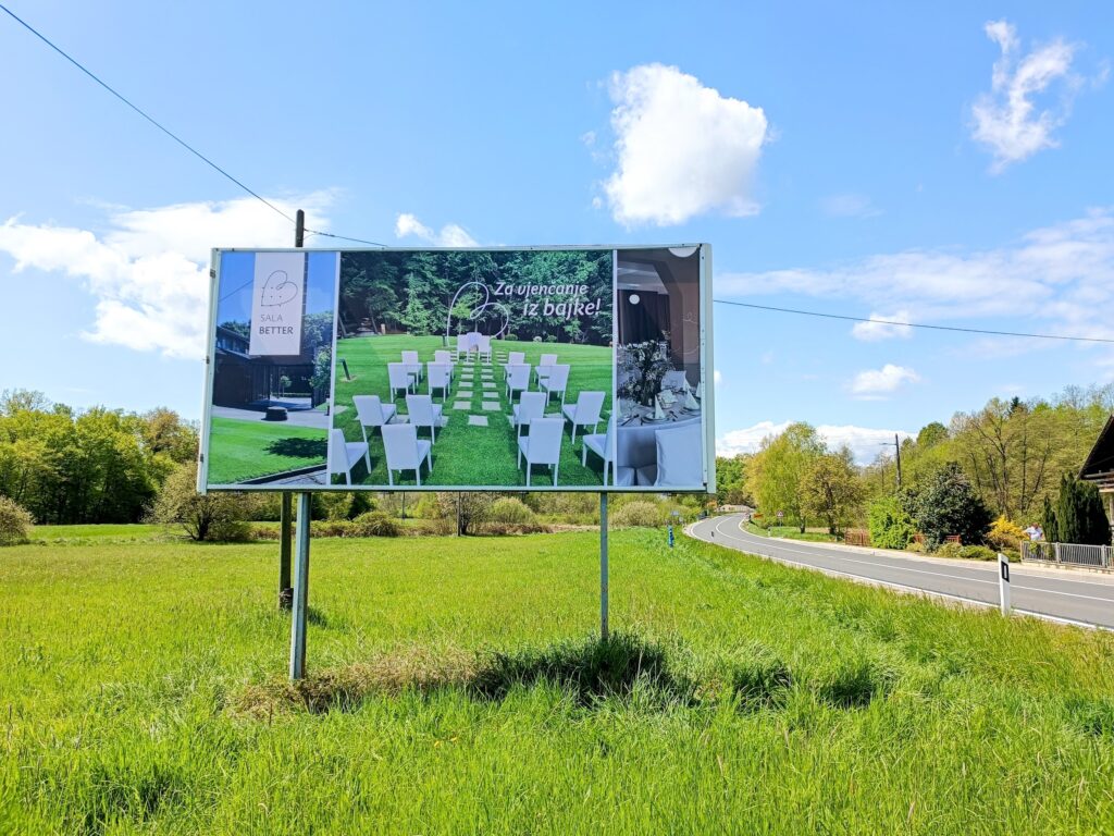 Obostrani reklamni billboard u mjestu Lučko preko puta benzinske crpke Lukoil. Dimenzija reklamnog panoa je 500cm širine i 250cm visine. Vizual izrađen u tehnici digitalnog tiska na PVC materijalu montiran i napet pomoću aluminijskih FM profila i zatezača.